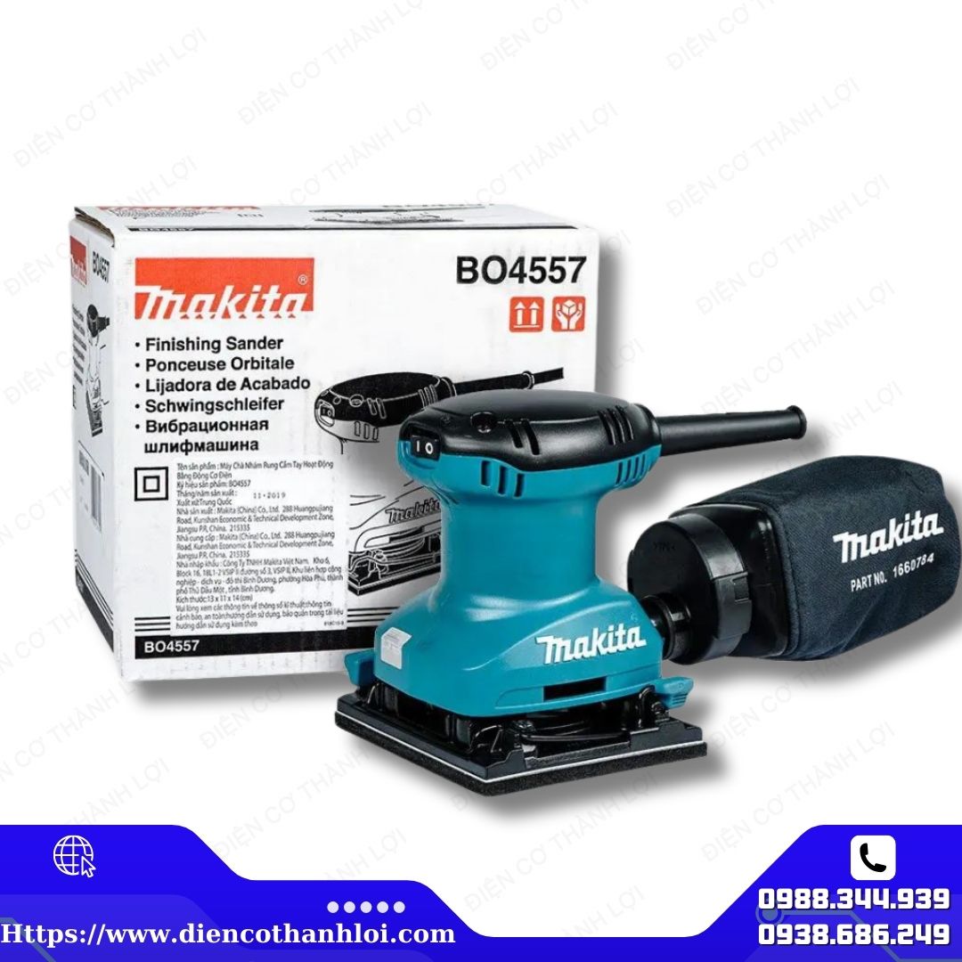Máy chà nhám rung vuông Makita BO4557 được phân phối tại ĐIỆN CƠ THÀNH LỢI . Những sản phẩm do chúng tôi cung cấp cam kết 100% chính hãng, có tem chống giả rõ ràng, chất lượng ổn định và có chế độ bảo hành tốt nhất thị trường.