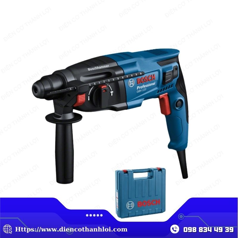 Máy khoan búa Bosch GBH 220 được phân phối tại ĐIỆN CƠ THÀNH LỢI . Những sản phẩm do chúng tôi cung cấp cam kết 100% chính hãng, có tem chống giả rõ ràng, chất lượng ổn định và có chế độ bảo hành tốt nhất thị trường.